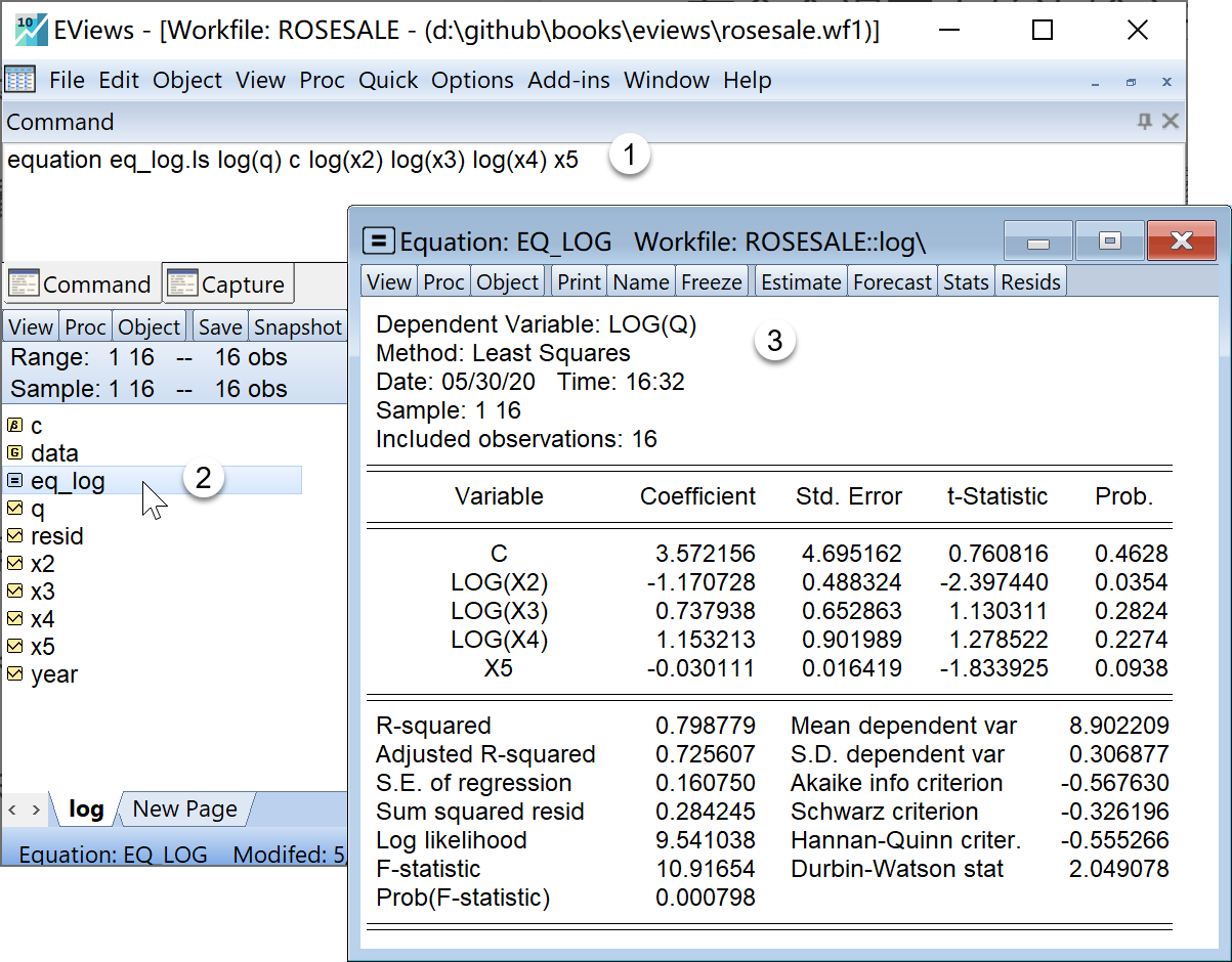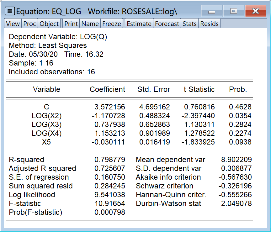 equation eq_main.ls log(q) c log(x2) log(x3) log(x4) x5 '对数模型
