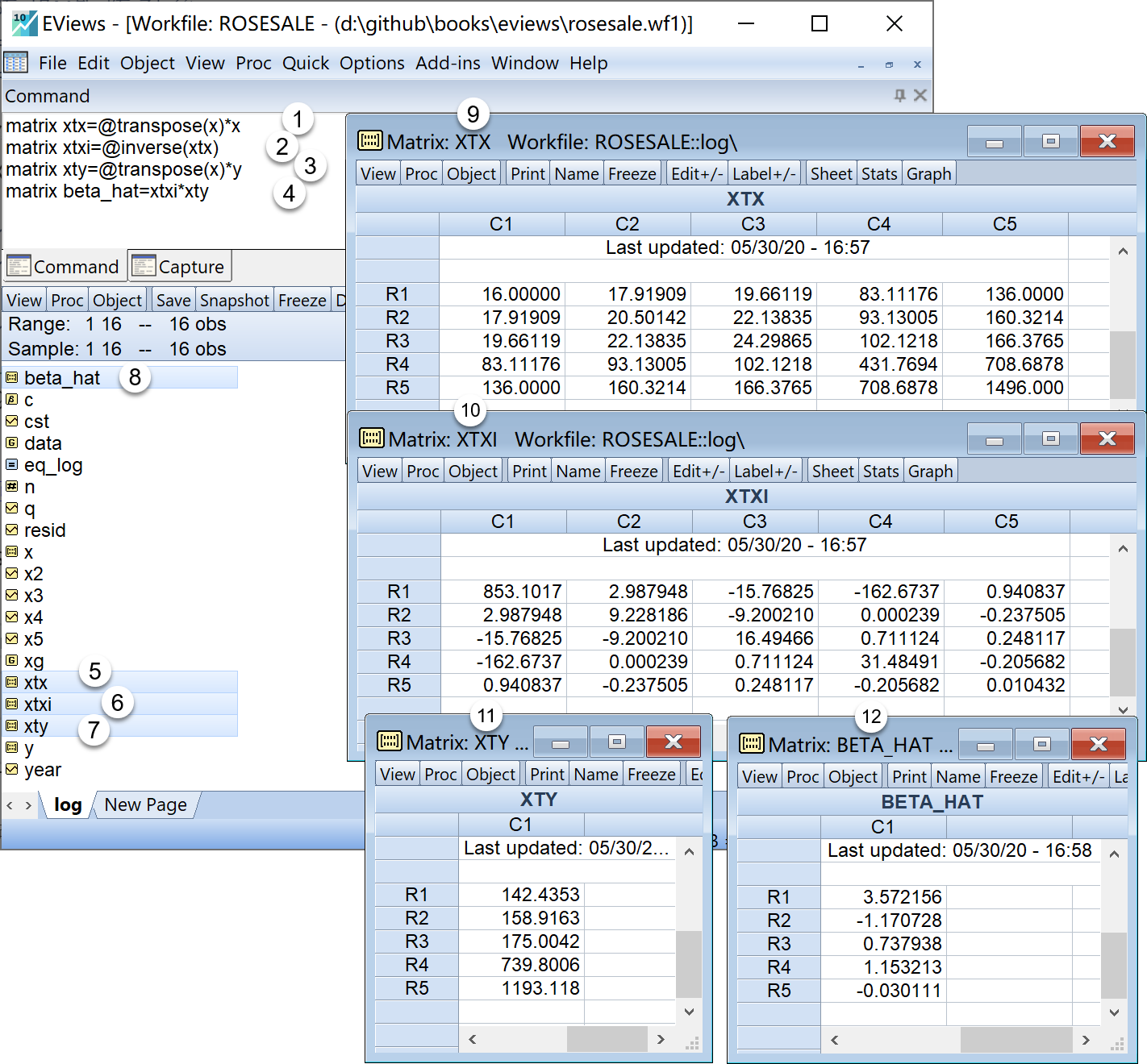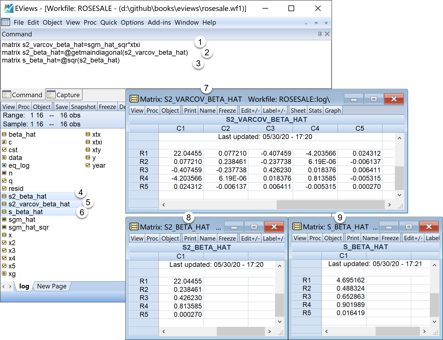matrix s2_varcov_beta_hat=sgm_hat_sqr*xtxi '回归系数的方差协方差矩阵