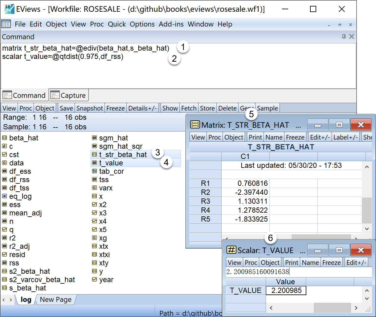matrix t_str_beta_hat=@ediv(beta_hat,s_beta_hat) '计算得到回归系数的样本t统计量