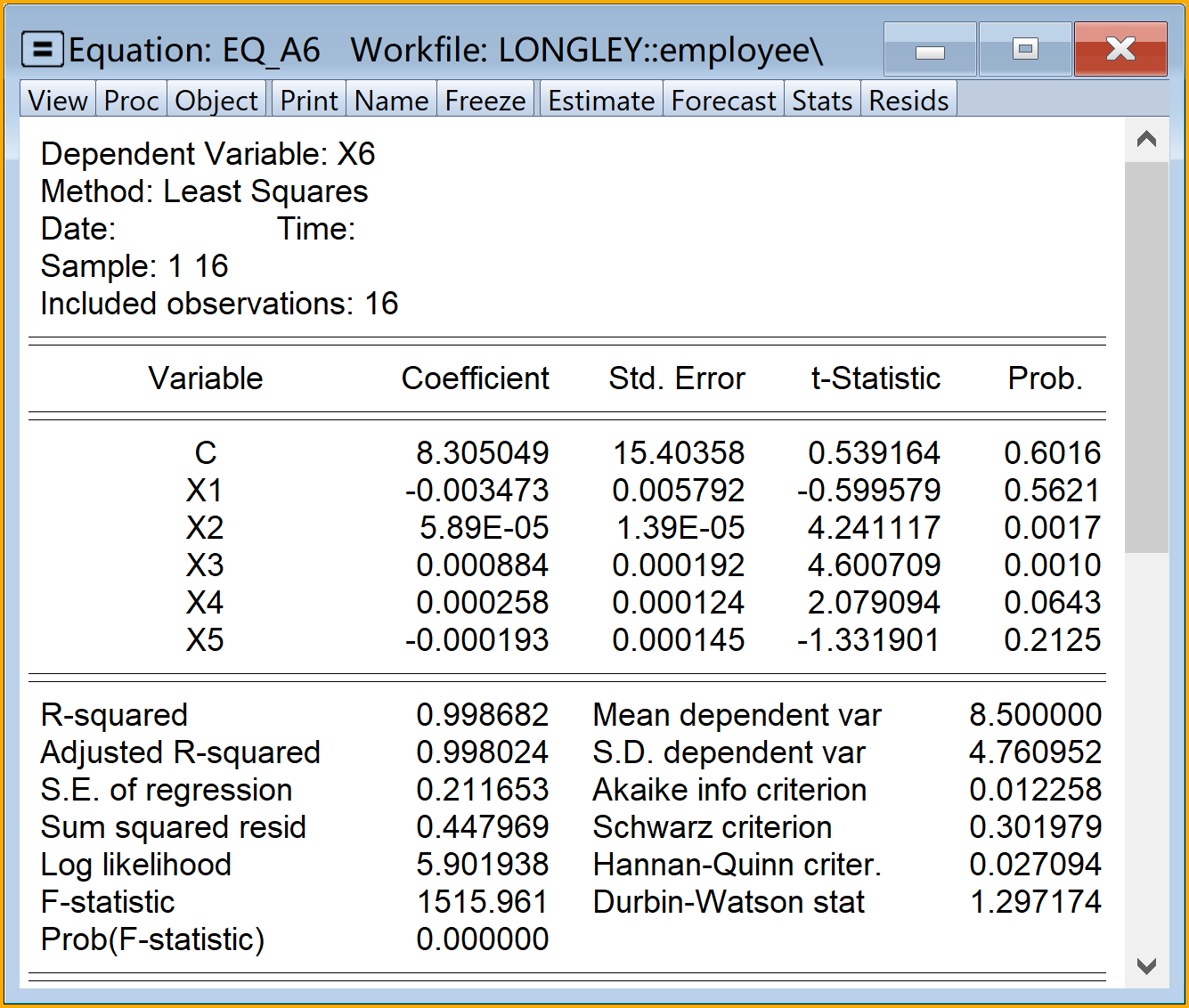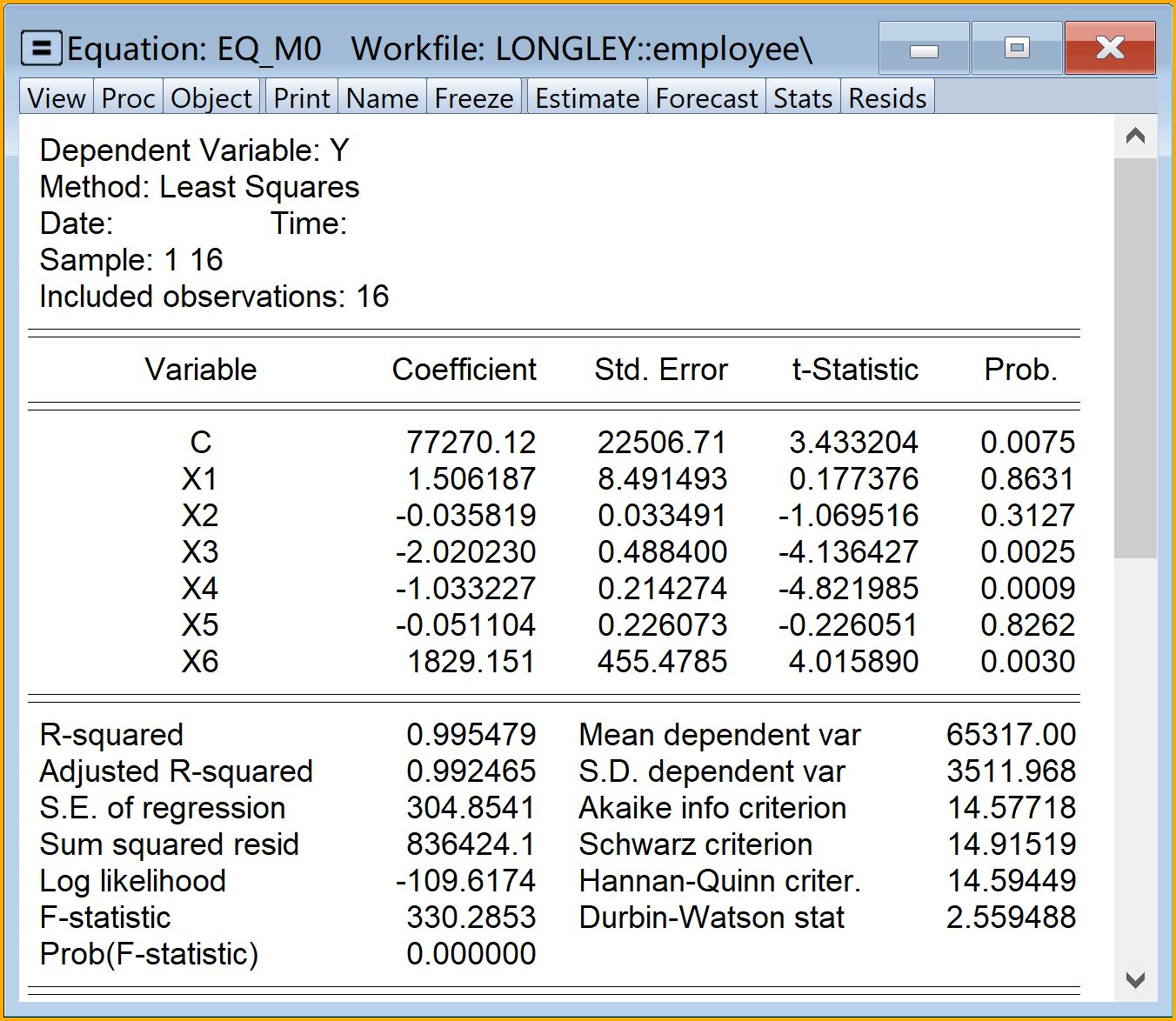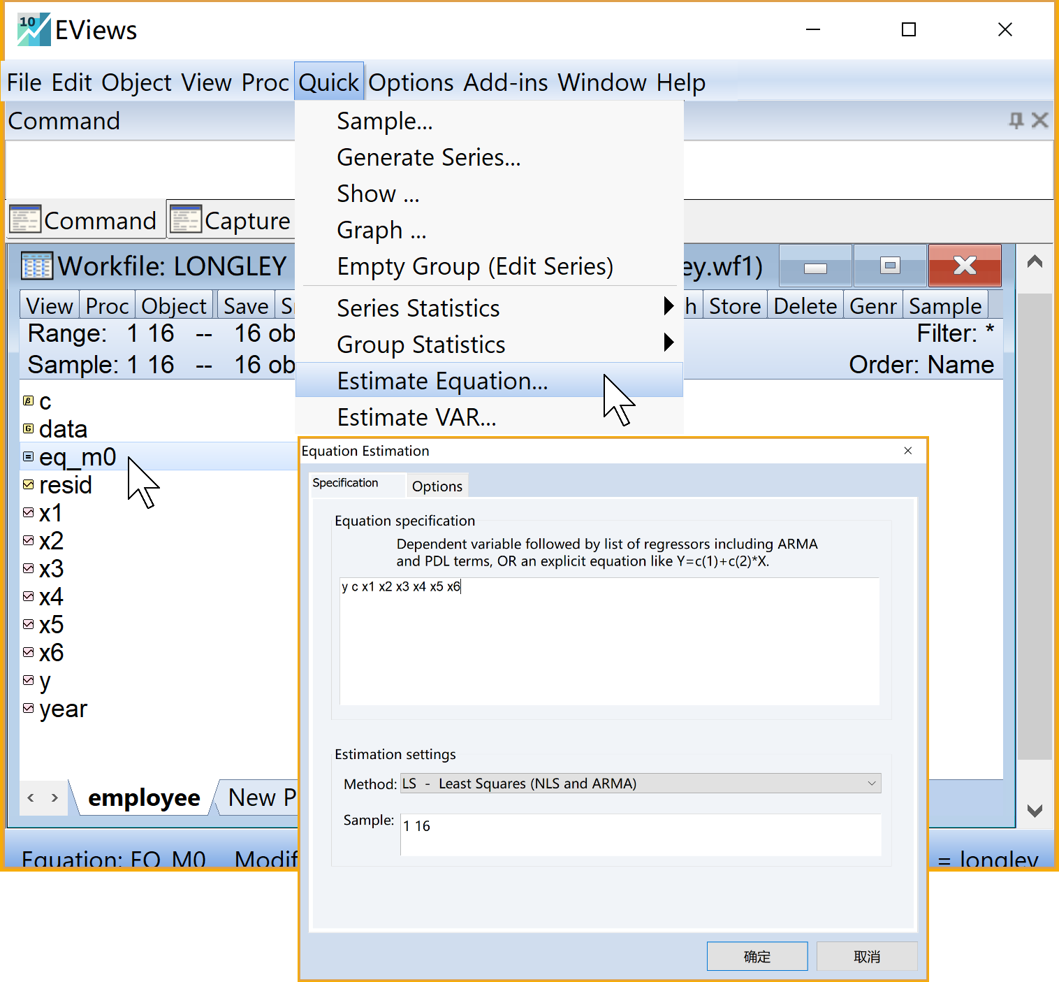 equation eq_m0.ls Y c x1 x2 x3 x4 x5 x6 '回归方程