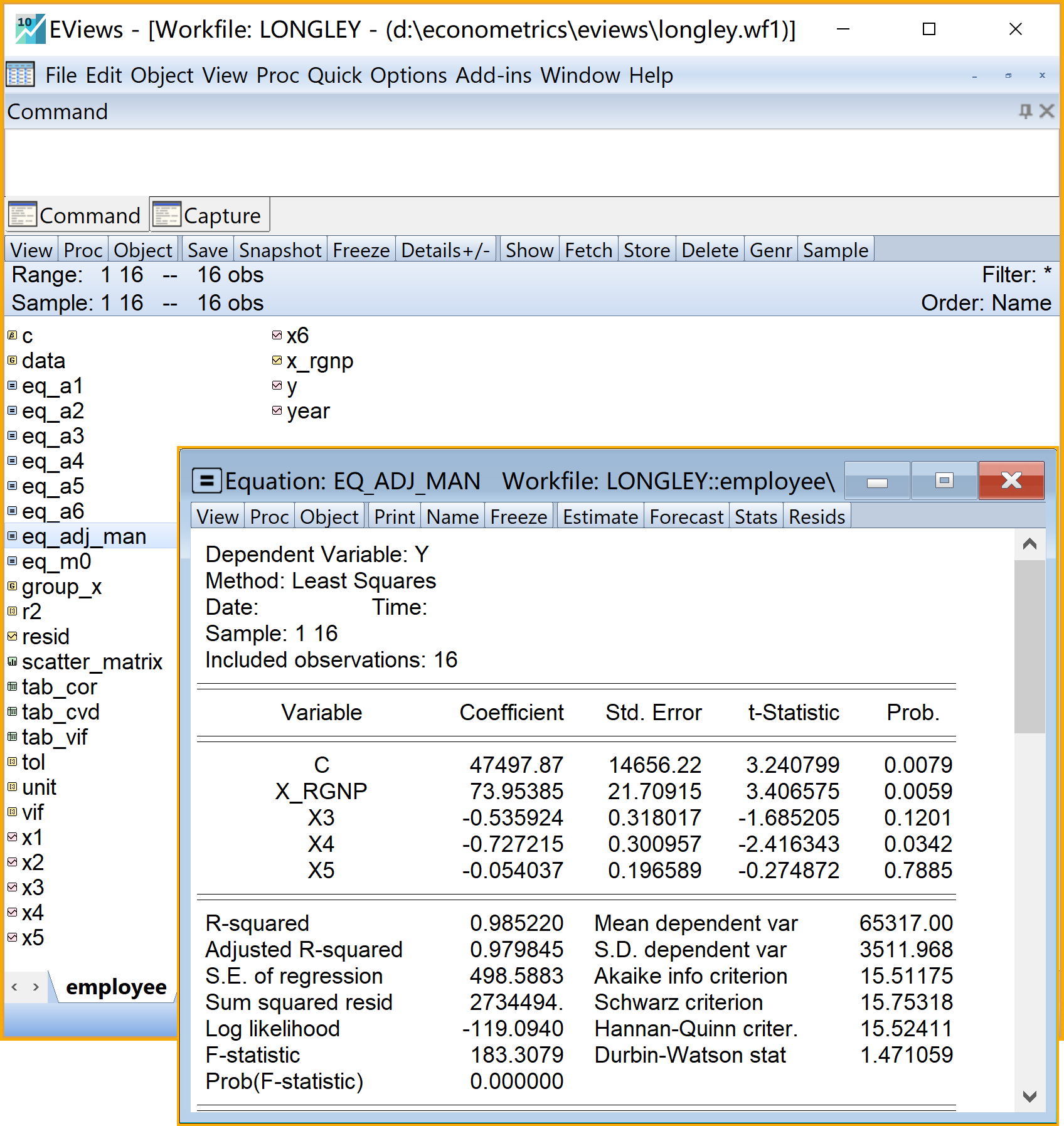 equation eq_adj_man.ls y c x_rgnp x3 x4 x5 '回归新方程