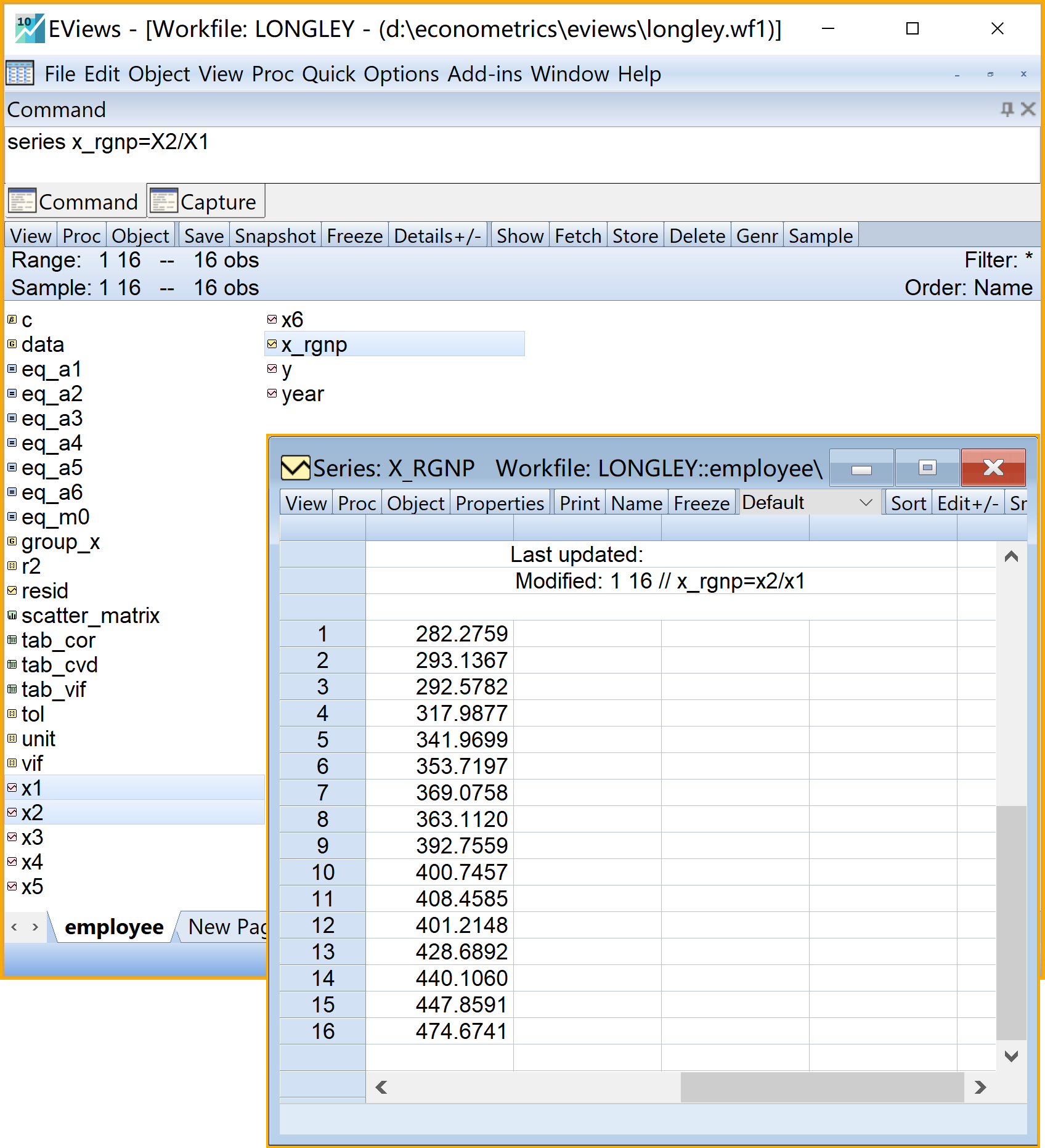 实际操作中,在EViews命令视窗中逐条输入代码,既容易出错,又不便于维护这些代码,还不能进行代码的重复使用(在第一章的 Section 1.8 中已经论述)。