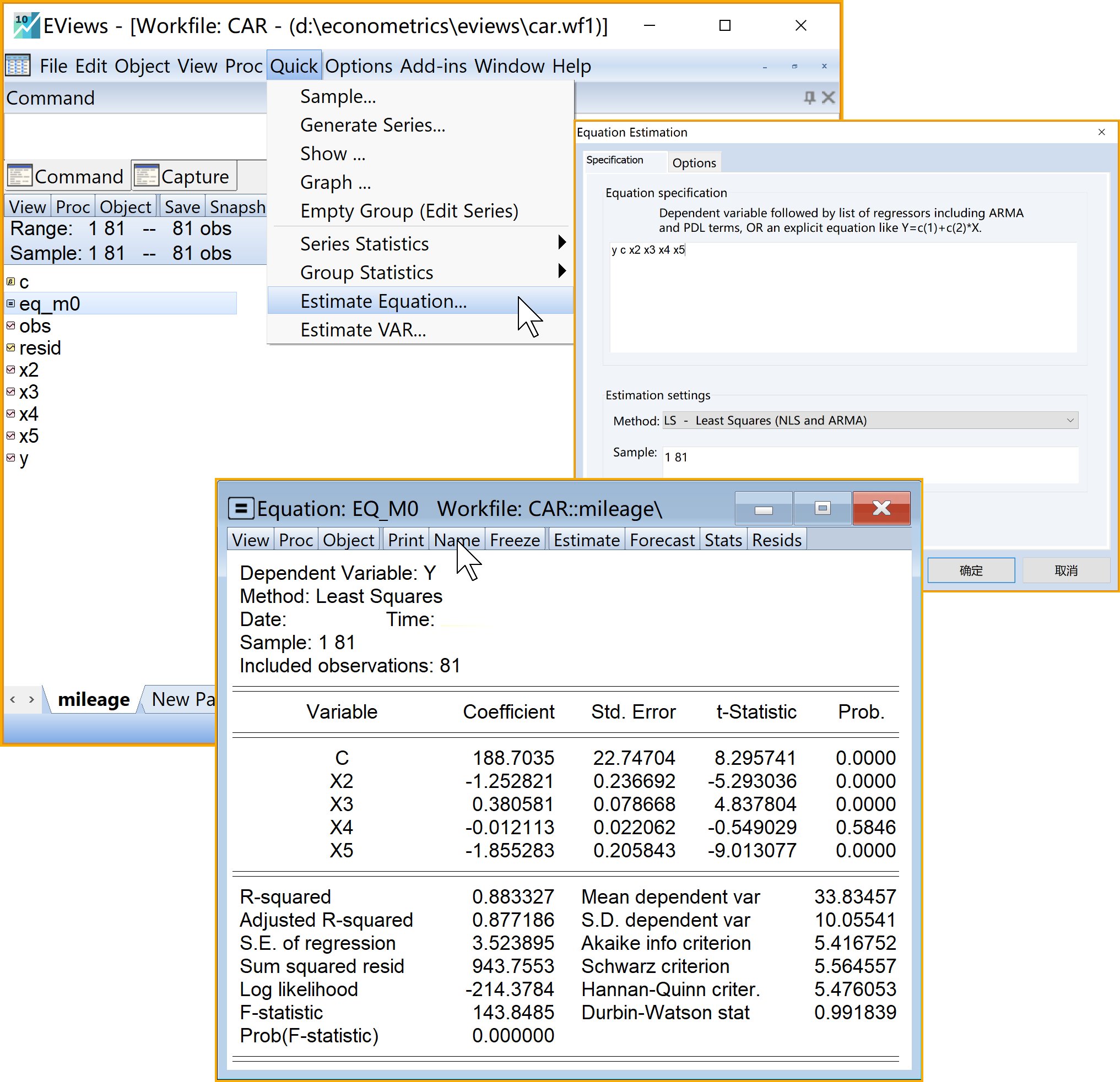 (1)依次选择\(\Rightarrow\) Quick \(\Rightarrow\) Estimation Equation