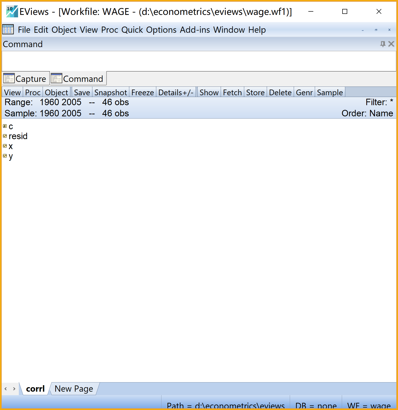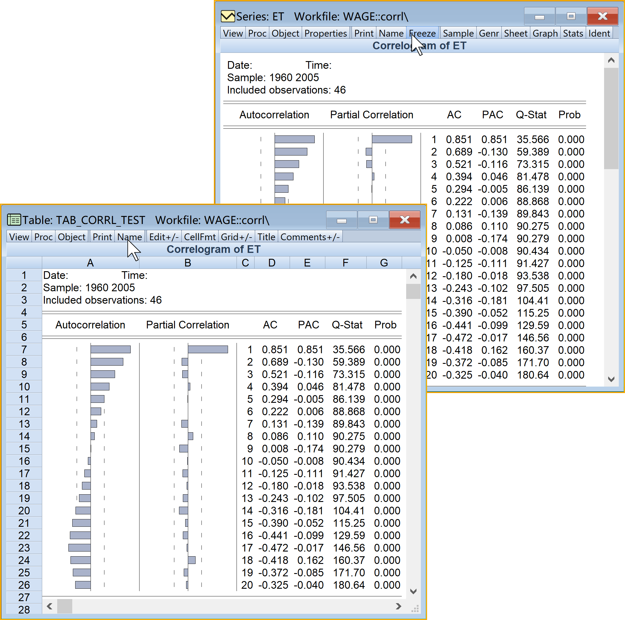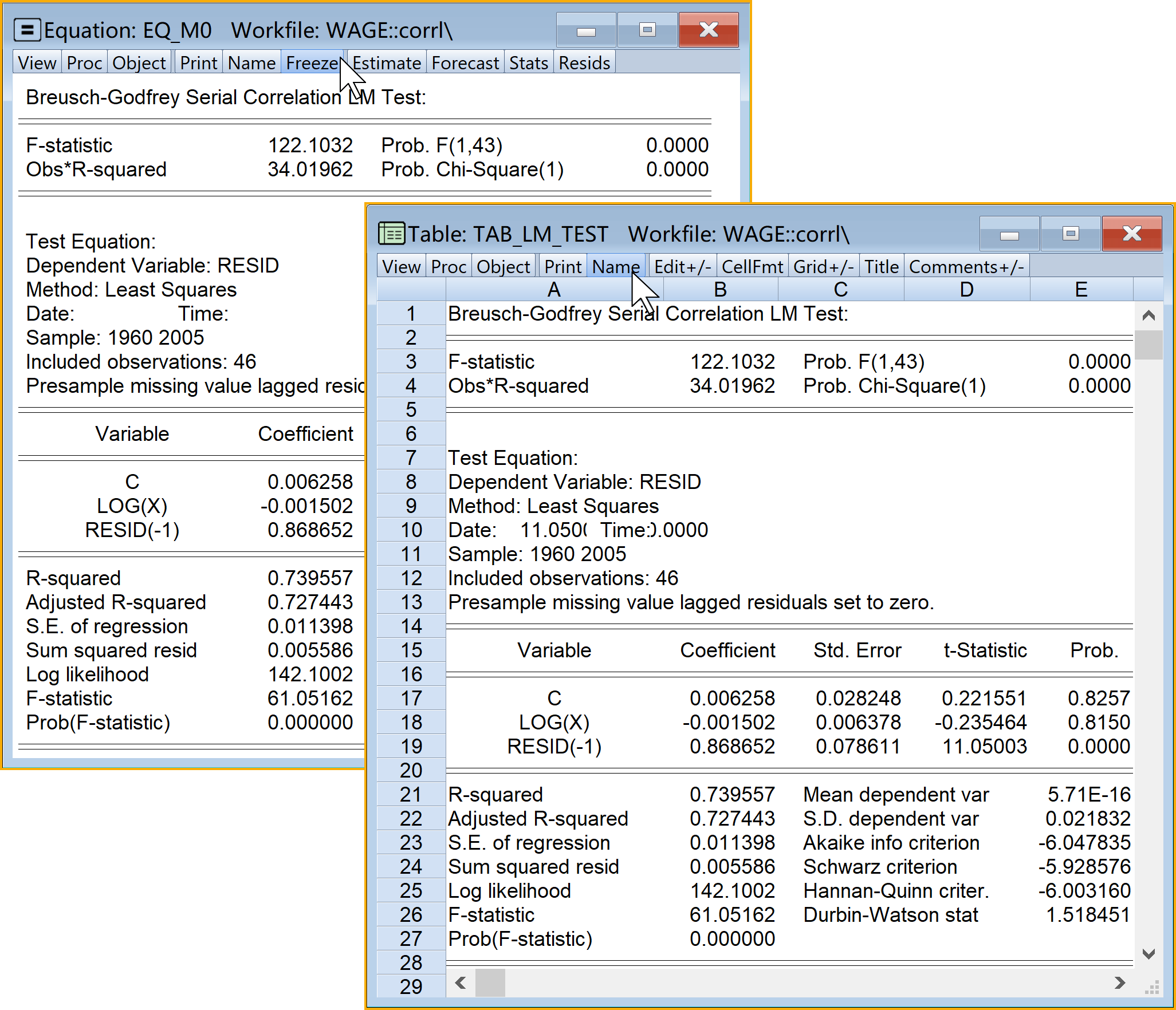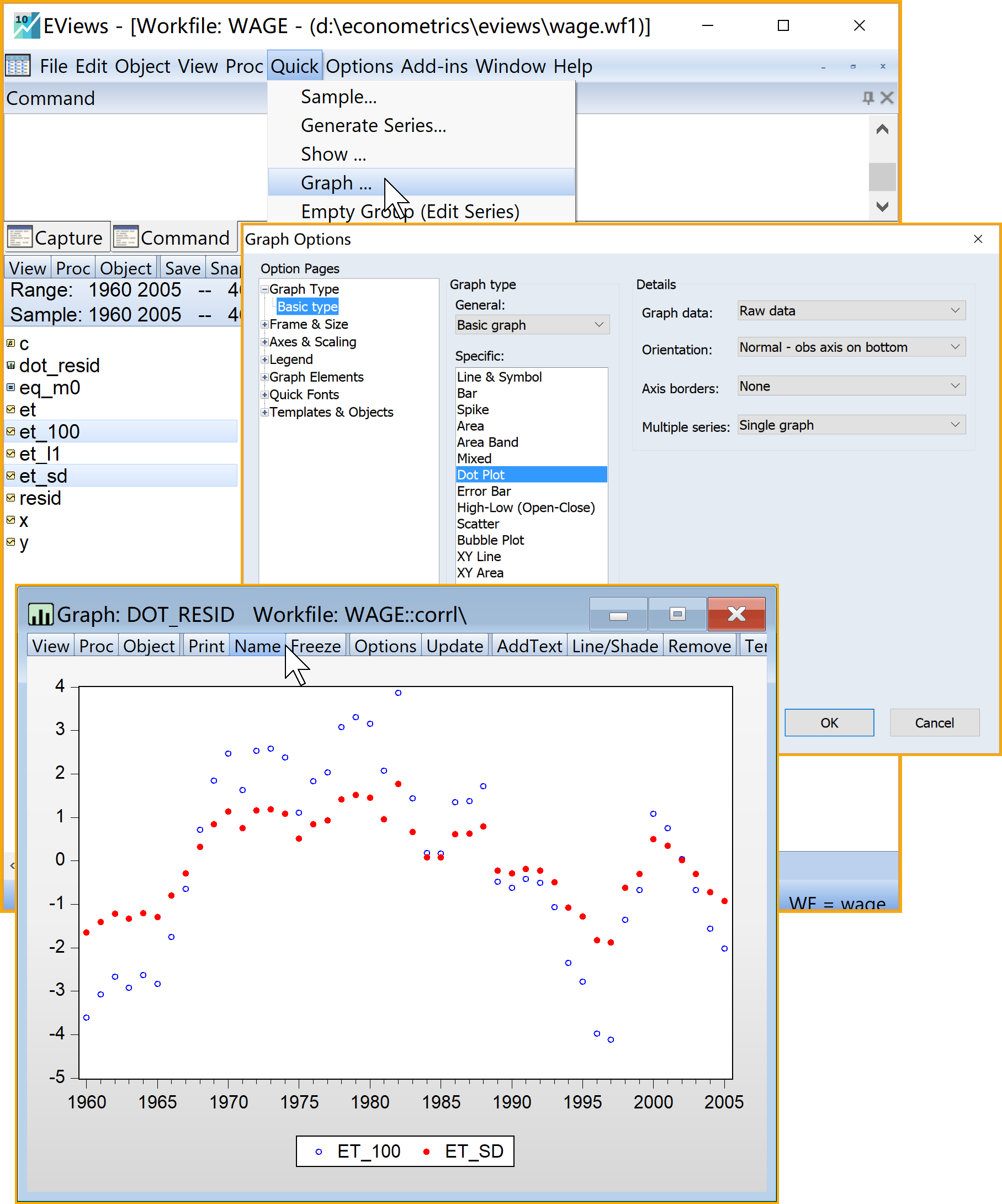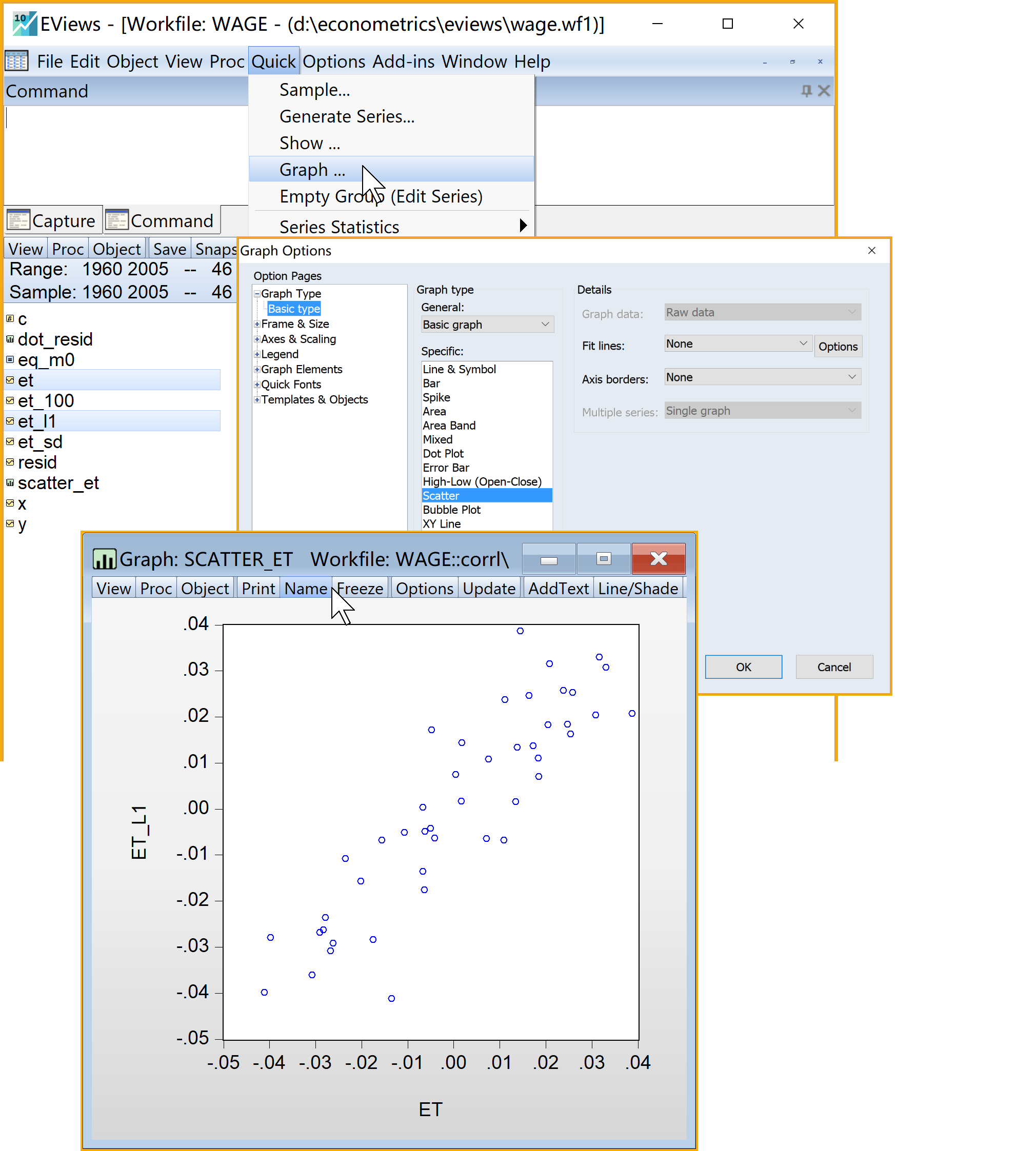 Eviews菜单操作(此处展示的是AR(1)的自相关情形,见 图 7.21):