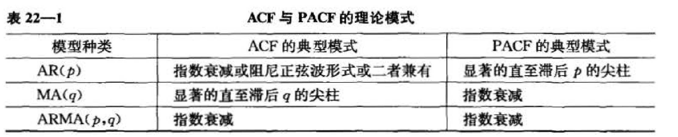 直接看该时序变量的自相关图(PAC)和偏自相关图(PAC)吧。什么图形会匹配什么样的模型,也是有一个经验法则 的(好好参看书本第22章,pg:790页吧!!!!)。