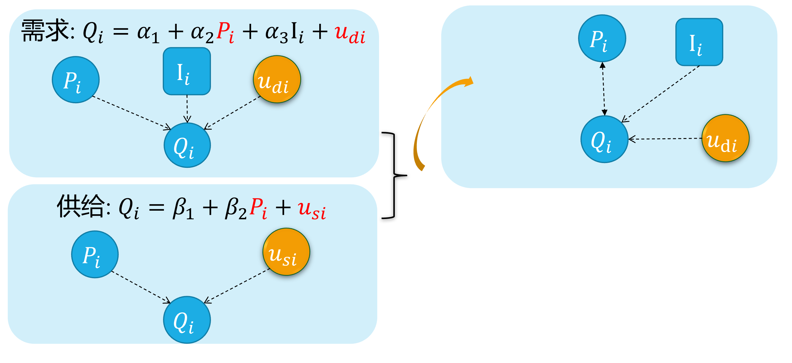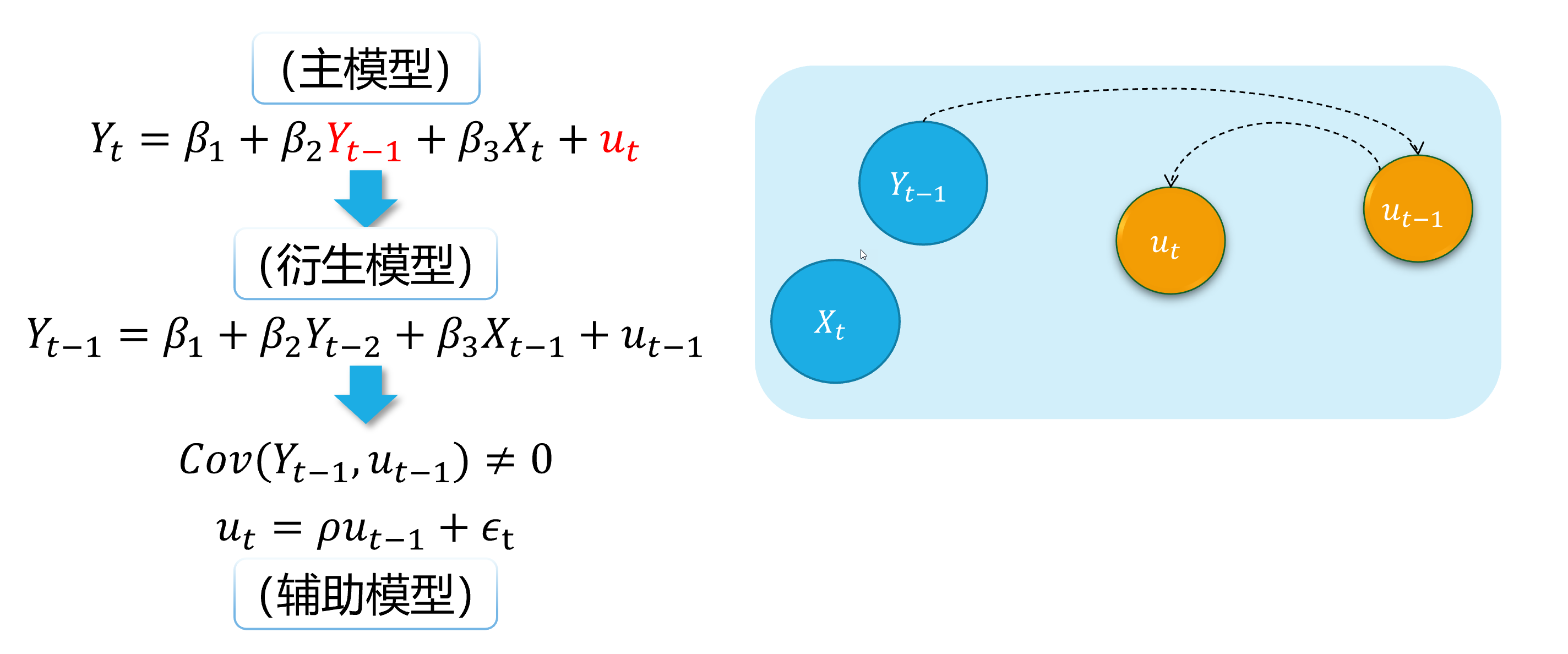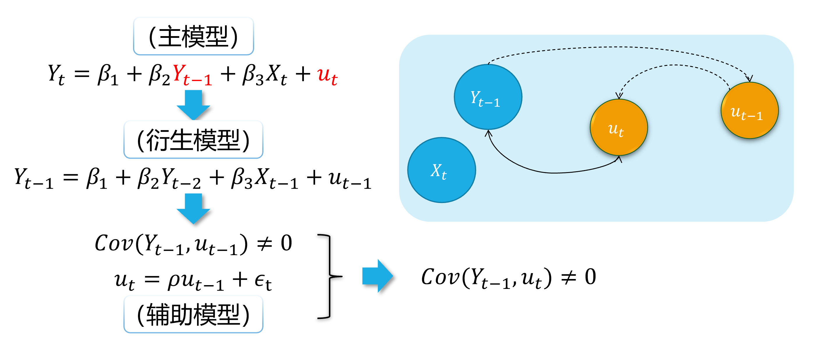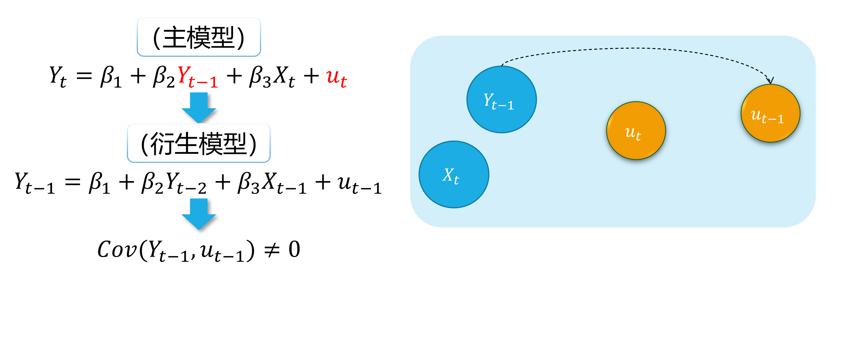 ??? Good evening everyone. Welcome to my class. I am teacher Hu Huaping. Here is my email. You can contact me when you have any questions with our course. In this part, we will learn Simultaneous Equation Models together by using almost eight lessons. --- count: false class: center, middle, duke-orange,hide_logo # Part 2:Simultaneous Equation Models (SEM) .large[ .red[Chapter 17. Endogeneity and Instrumental Variables] Chapter 18. Why Should We Concern SEM ? Chapter 19. What is the Identification Problem ? Chapter 20. How to Estimate SEM ? ] ??? As you see this part contains four chapters. Firstly, we will go through Chapter 17. Regressor Endogeneity problems and instrumental Variables solutions will be discussed in this chapter. Anyway, this chapter will be a good start for learning SEM. The next three chapters focus closely on SEM. We will answer three important questions in turn. In Chapter 18, we will know SEM is important in social science and it also brings new challenges to us. Large SEM system always contains lots of parameters need to be solved and will face with the identification problems. We will give you guides and rules to check the SEM identification status in Chapter 19. Finally, we will discuss different SEM estimation approaches in Chapter 20, including 2SLS, Three-stage least squares (3SLS) and full information maximum likelihood (FIML) method. --- layout: false class: center, middle, duke-softblue,hide_logo name: chapter17 # Chapter 17. Endogeneity and Instumental Variables [17.1 Definition and source of endogeneity](#definition) [17.2 Estimation problem with endogeneity](#problem) [17.3 IV and choices](#IV) [17.4 Two-stage least squares method](#TSLS) [17.5 Testing instrument validity](#validity) [17.6 Testing regressor endogeneity](#endogeneity) ??? [source](https://web.sgh.waw.pl/~mrubas/AdvEcon/pdf/T2_Endogeneity.pdf) So let us start the first chapter. In this chapter: - You will see how the method of **instrumental variables** (IV) can be used to solve the problem of **endogeneity** due to one or more regressors. - Also we will learn the method of **two stage least squares** in section 17.4. 2SLS method is second in popularity only to ordinary least squares for estimating linear equations in econometrics. - And some useful testing techniques will be introduced to check instrument validity and regressor endogeneity. These content will be uncovered in the last two sections. --- layout: false class: center, middle, duke-softblue,hide_logo name: definition ## 17.1 Definition and sources of endogeneity ??? In this section we will talk about the definition of endogeneity and its main sources. The story begins with the stochastic regressors. --- layout: true <div class="my-header-h2"></div> <div class="watermark1"></div> <div class="watermark2"></div> <div class="watermark3"></div> <div class="my-footer"><span>huhuaping@ <a href="#chapter17"> Chapter 17. Endogeneity and Instumental Variables |</a>               <a href="#definition"> 17.1 Definition and source of endogeneity </a> </span></div> --- ### Review: the CLRM assumptions Let's revise the classic linear regression model assumptions(CLRM): - **A1**: The true model is `\(\boldsymbol{y= X \beta+\epsilon}\)`. - **A2**: `\(\forall i, E(\epsilon_i|X) = 0\)` (conditional zero mean) more about this later. - **A3**: `\(Var(\epsilon|X) = E(\epsilon \epsilon^{\prime}|X) = \sigma^2I\)` (identical conditional variance ). - **A4**: `\(\boldsymbol{X}\)` has full column rank. - **A5**: (for inference purposes, `\(\boldsymbol{\epsilon} \sim N(\boldsymbol{0}, σ^2\boldsymbol{I}))\)`. Under **A1-A4**(also namely **CLRM**), the OLS is **Gauss-Markov** efficient. Under **A1-A5**, we donote **N-CLRM**. ??? we have discussed these assumptions before the class. And we denote the Gauss-Markov model assumption system as classical linear regression model (CLRM). - **Assumption 1**: The model is assumed to be true and be linear with parameters. - **Assumption 2**: the disturbance term has conditional zero expectation. And we will relax this assumption later. - **Assumption 3**: this means the conditional variance of disturcances is identity given X. the other way to express assumption 3 is that the disturbance term is homoscedasticity['hɔməusi,dæs'tisəti]. - **Assumption 4**: The regressor matrix X has full column rank. Which means that none of the regressors is the perfect linear function on the rest of the regressors. - **Assumption 5**: We will bring in the norm distribution assumption on the disburtance. This assumption aims for hypothesis testing purposes. Joint with A2, A3, and A5, the disturbance is assumed to be normally identical independent distribution. We just write i.i.d for shortly. With assumptions **A1-A4**, We note **CLRM**. Under CLRM the OLS is **Gauss-Markov** efficient. Which means under CLRM, when we use OLS method we will obtain the Best-Linear-unbiased estimators on the true parameters. [hand writing] While, with assumptions **A1-A5**, we used to denote as N-CLRM. we can conduct kinds of inference and tests based on N-CLRM. Now let us focus on assumption 2. --- ### Review: the A2 assumptions For the population regression model(PRM): `$$\begin{align} Y_i &= \beta_1 +\beta_2X_i + u_i && \text{(PRM)} \end{align}$$` - **CLRM A2** assumes that X is fixed (given) or independent of the error term. The regressors `\(X\)` **are not** random variables. At this point, we can use the OLS method and get **BLUE**(Best Linear Unbiased Estimator). `$$\begin{align} Cov(X_i, u_i)= 0; \quad E(X_i u_i)= 0 \end{align}$$` - If the above A2 assumption is violated, the independent variable `\(X\)` is related to the random disturbance term. In this case, OLS estimation will no longer get **BLUE**, and **instrumental variable method** (IV) should be used for estimation. `$$\begin{align} Cov(X_i, u_i) \neq 0 ; \quad E(X_i u_i) \neq 0 \end{align}$$` ??? If A2 is violated, then the endogeneity problem arise. Now we